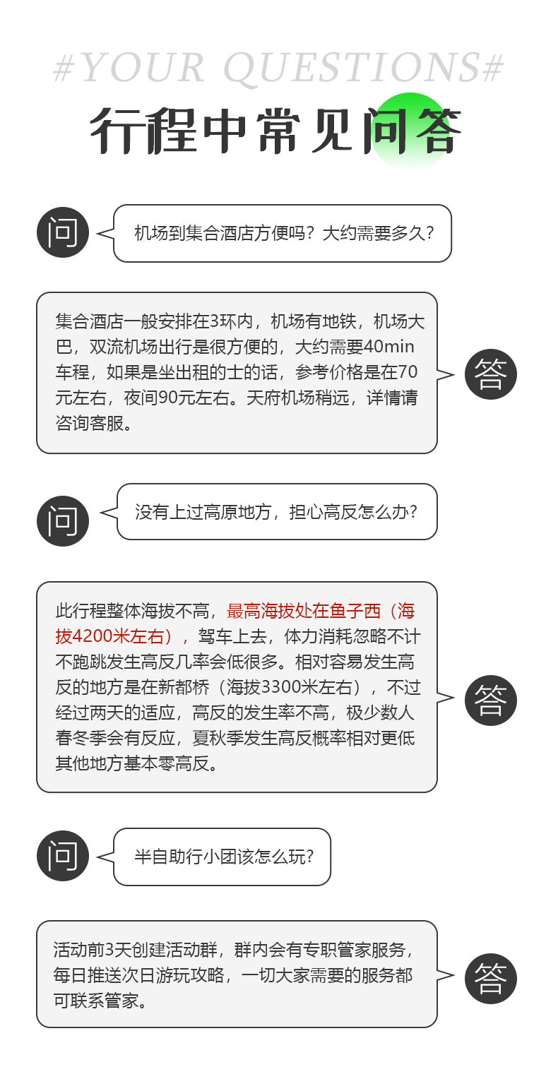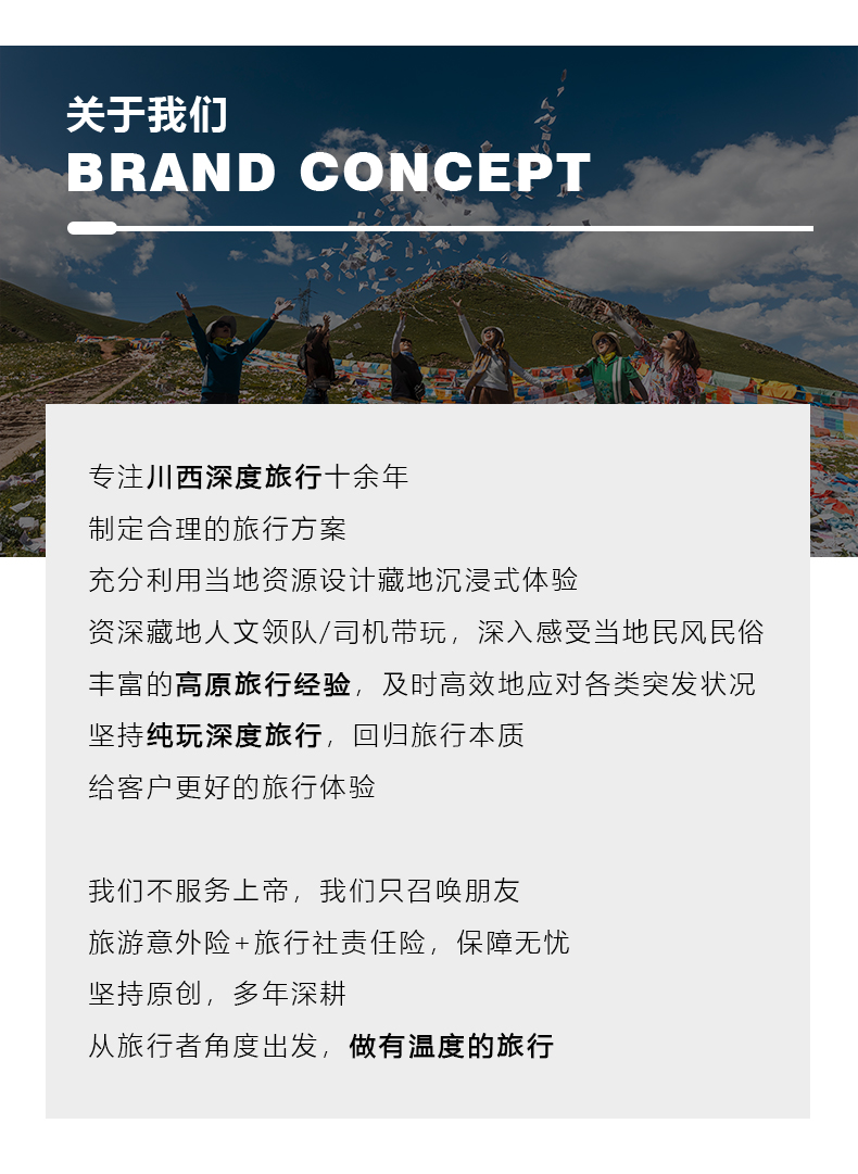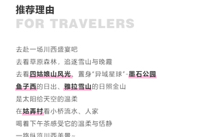 3、由于返回路程较长,可能会因为修路、交通管制,堵车耽误时间,到达时间较晚,由于川西地区路况较差,山道狭窄,有可能因为堵车而发生延误。请大家尽量预定第二天返程的航班或车次比较保险。