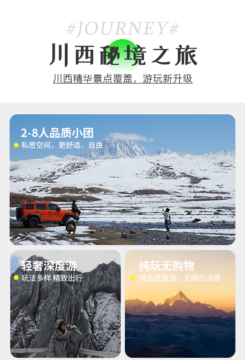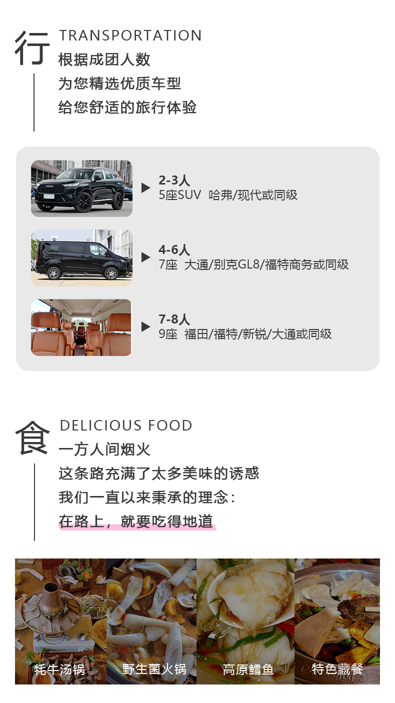2-8人精致小团 : 半自由行,司机兼向导,司机不进景区,不会专业讲解。