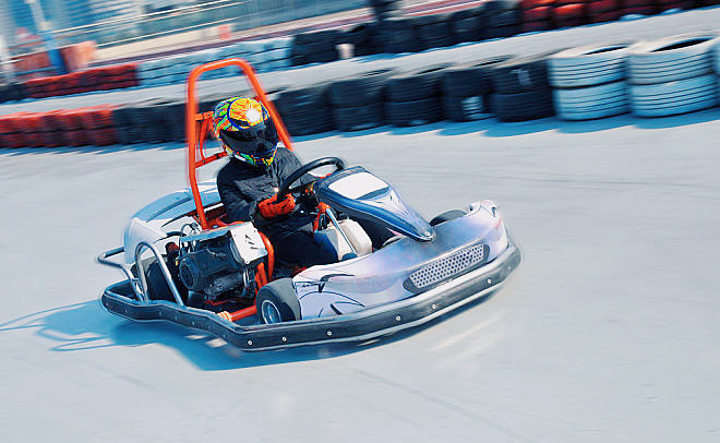 一个车架,一台两冲程发动机,四个独立车轮便构成了卡丁车的全部。因其具有易于驾驶,安全而又刺激的特点,所以迅速风靡世界。