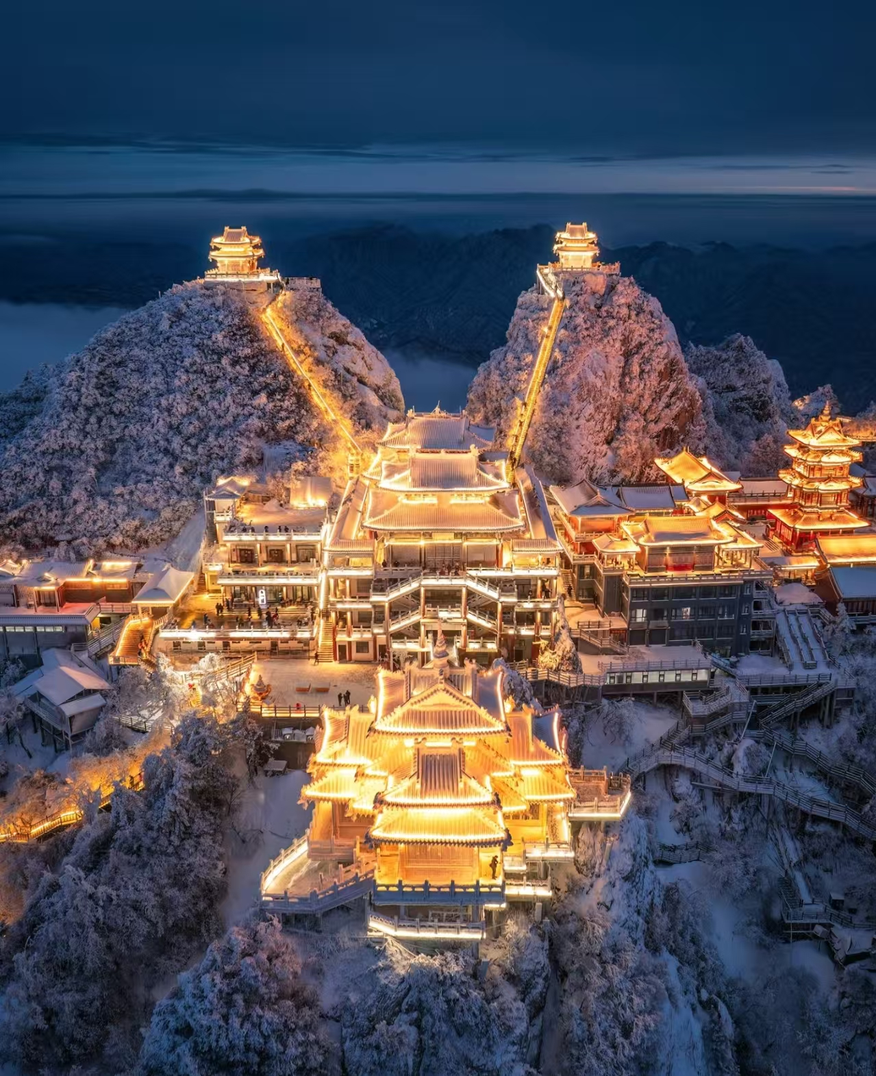 蓝天、白雪、金殿、雾凇、日出、云海、晚霞、霓虹……没有人能拒绝冬日的老君山!