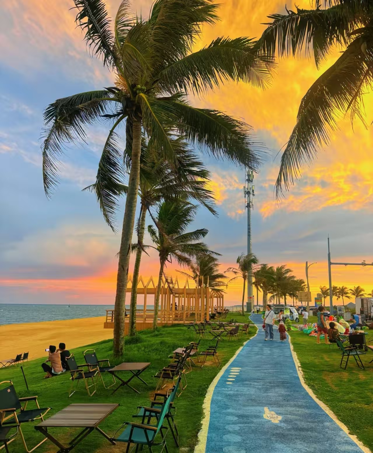 享受椰树林的休闲,沙滩露营的放松,海岸线的蜿蜒
