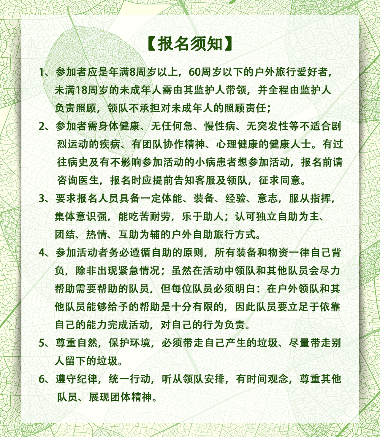 【报名提醒】:出发前1-2天客服发"活动通知信息"和微信群