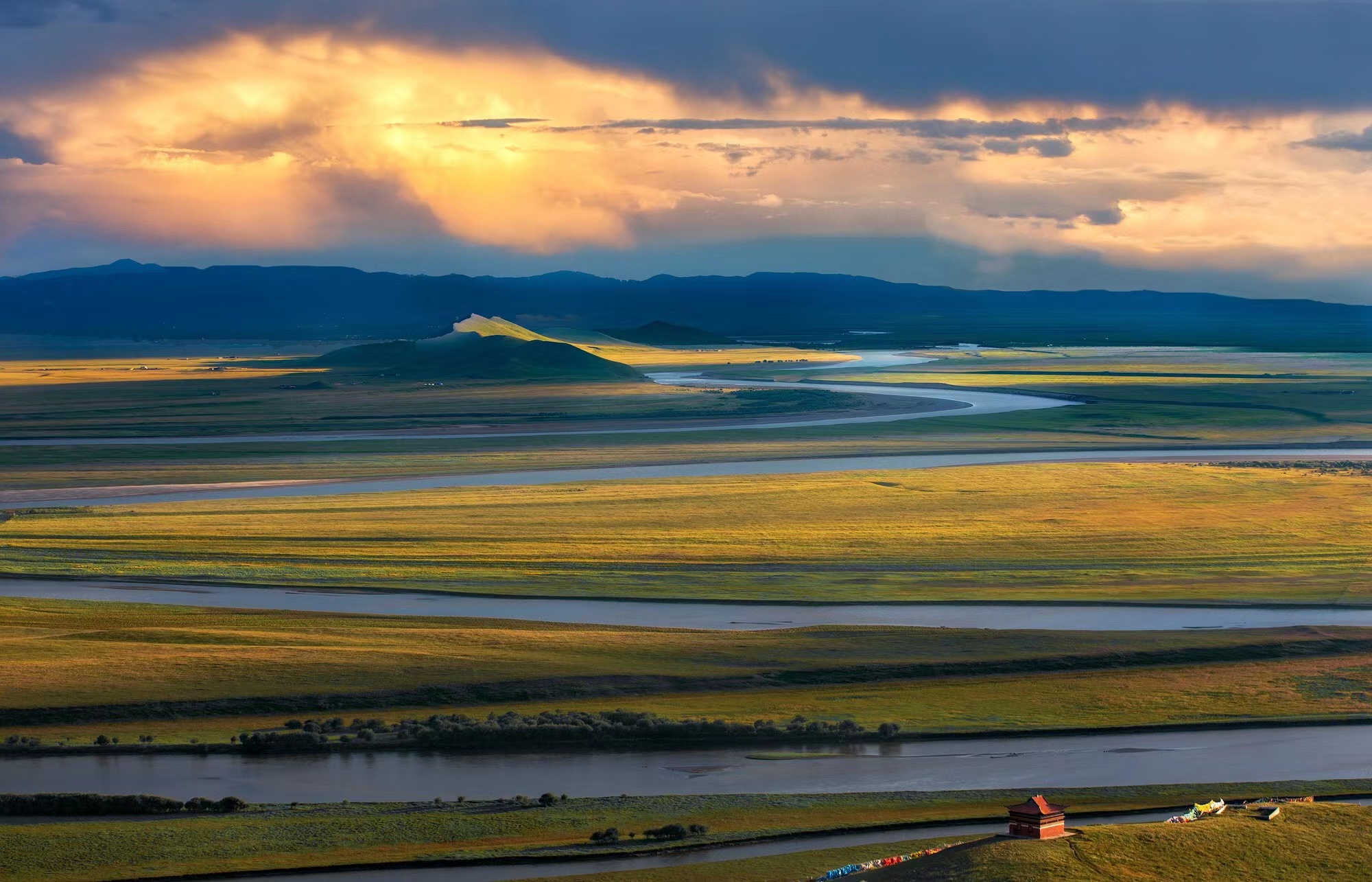 游完花湖后赶往唐克,领略“落霞与孤鹜齐飞,秋水共长天一色”的【黄河九曲第一湾】独到之美。最美的景色是在黄昏时分,夕阳一点点变红,朝山边落下去,整个河谷笼罩在一片金黄之中。黄河岸边碧草青青,野花遍地,躺在草丛中、坐卧花簇里,给人回归大自然的感觉,让你身心得到前所未有的解脱。在这儿观赏草原上的黄河,宛如金银缎带,阳光下波光粼粼,极目远眺其壮观景致使人顿生膜拜之感,站在这里你会对人和自然有新的感悟。
