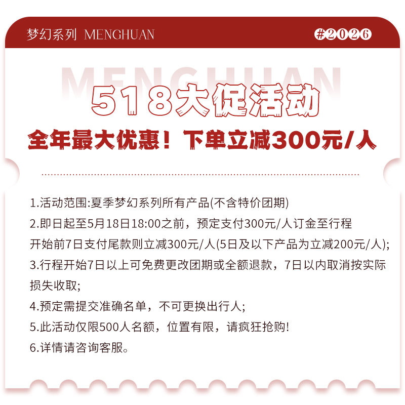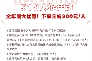 优惠团期:4月29日-5月4日、5月29日-6月25日、9月1日-9月24日