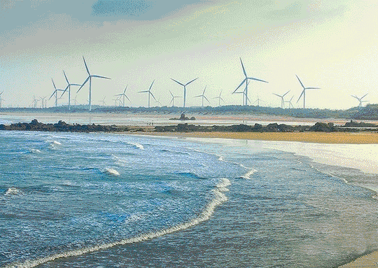 长江澳风力田景观区位置在平潭岛东北方向的海湾区,得天独厚的地理优势造就了风力发电资源的产生,这也是大自然带给平潭人民的礼物。在风神的厚爱下,也使得这片海湾成了人们眼里的旅游胜地,虽然平潭随处可见风力发电站,但唯独这一片是特为密集的。也因为如此长江澳风力田才成为了福建特大的风力发电田,是现代文明与大自然组成的一副现代风景画。