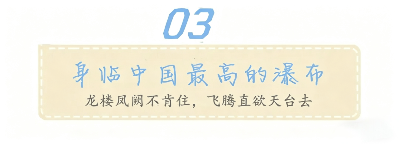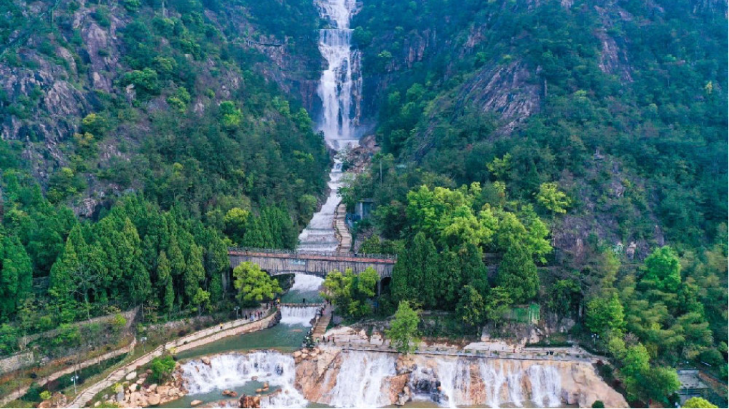 瀑布的上下落差约325米,为中华第一高瀑。李白曾2次到访,也是《徐霞客游记》开篇之作。